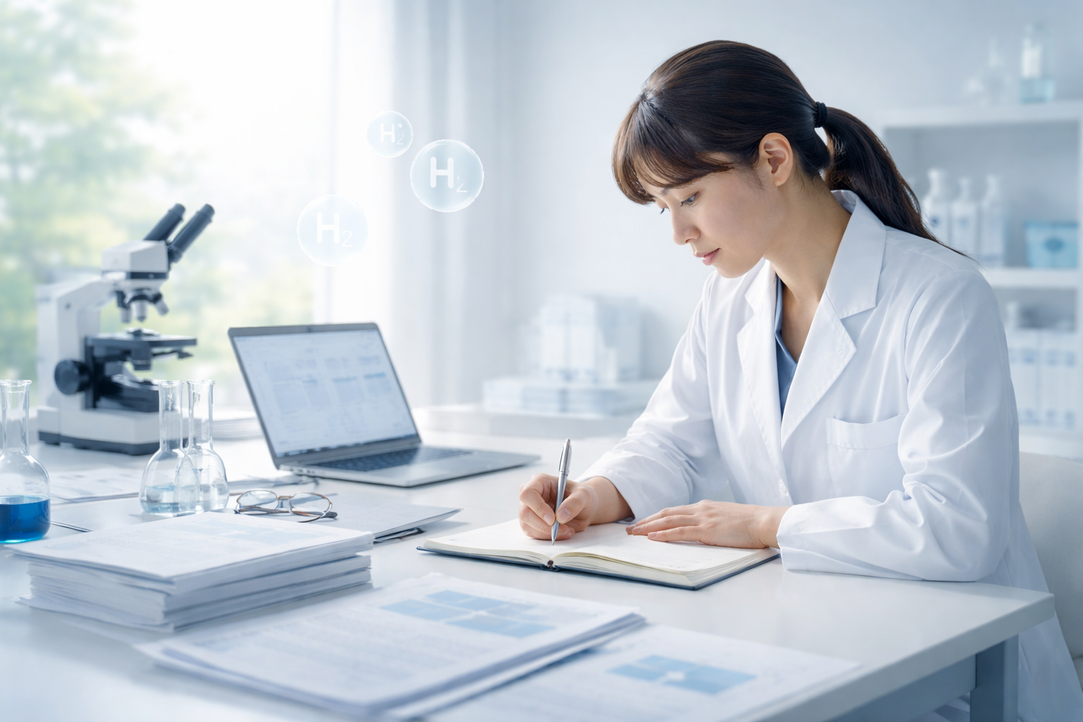 水素吸入の有効性を検討するには、「水素ガスの流量」、「吸入時間」、「吸入頻度」、「継続期間」、「水素と酸素の組成比」といった客観的条件が不可欠です。