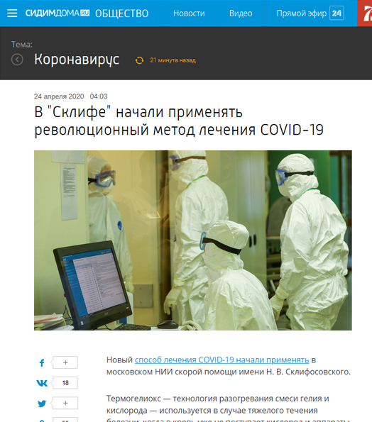 最近、モスクワ保健省の報道機関は、ロシアの科学者が新型コロナウイルス肺炎を治療するために加熱されたヘリウム酸素ガスを使用する方法を開発していると述べ、救急医学のスクリフォソフスキー研究所は現在テストを行っています。