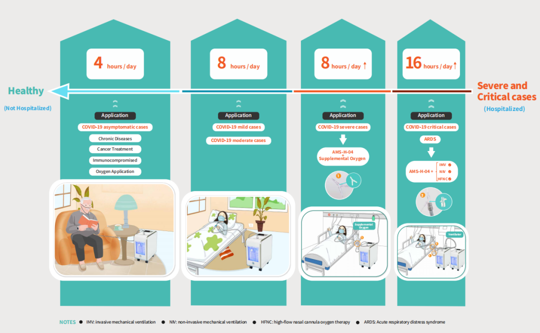 公式の診断と治療計画に、そして患者が使用するために武漢などの病院に3,000台以上設置し、患者は使用後、息切れ、胸の圧迫感、胸の痛み、呼吸数、心拍数、血中酸素飽和度 吸入前に大幅な改善がありました。