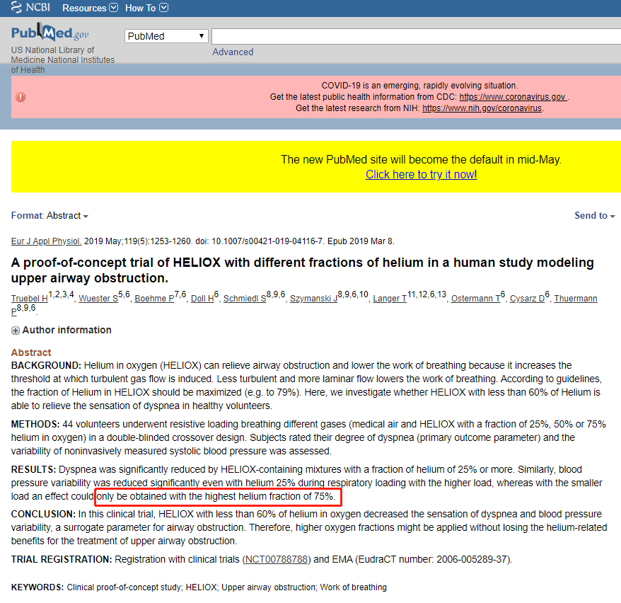 メモ:2000年から2019年まで、ヨーロッパの呼吸器共同体はヘリウムと酸素の医学研究に専念してきました。