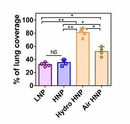 ・特殊なナノ粒子(HNP)が肺の奥深くまで薬を届ける